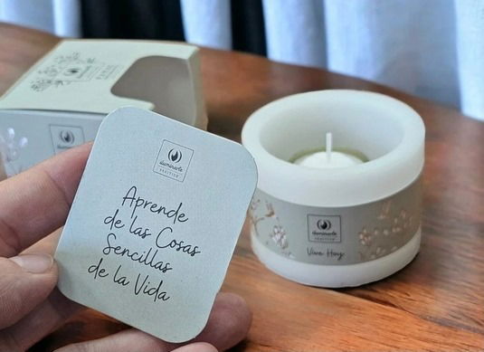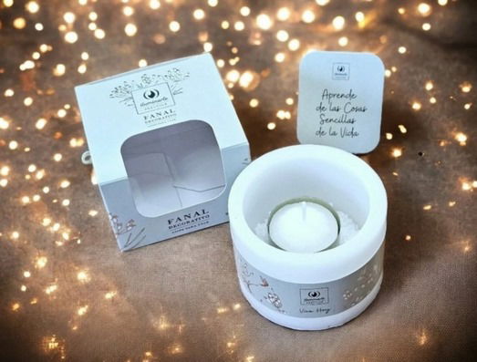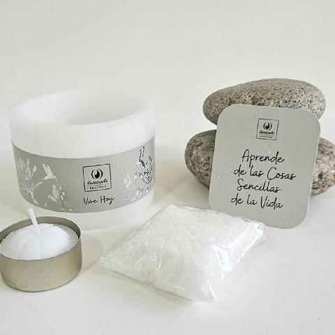 Incluye todo lo necesario: sal decorativa, vela y mensaje