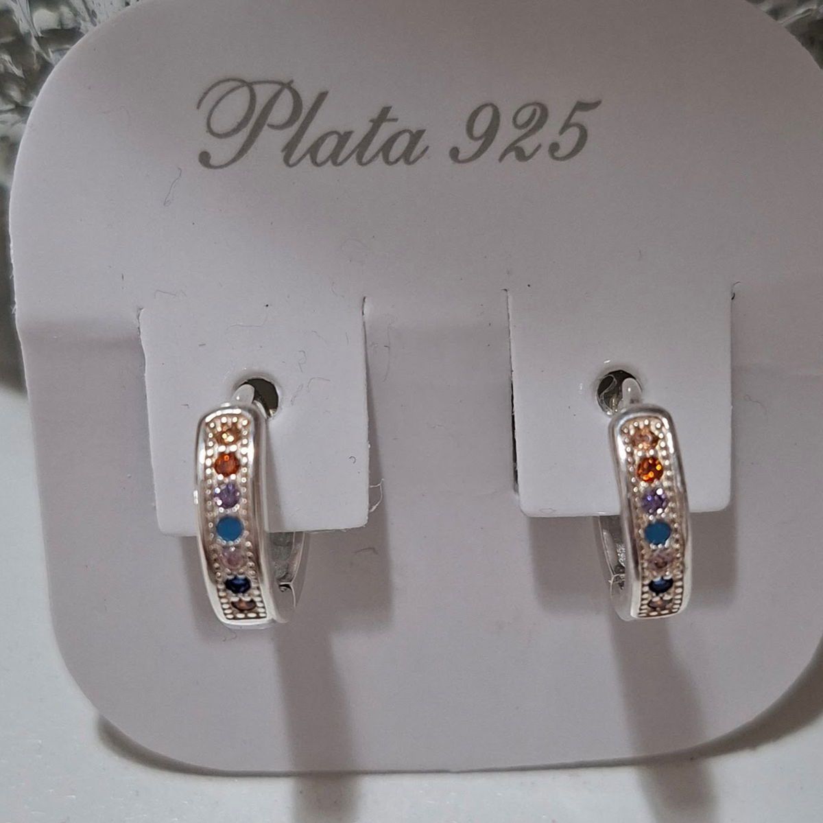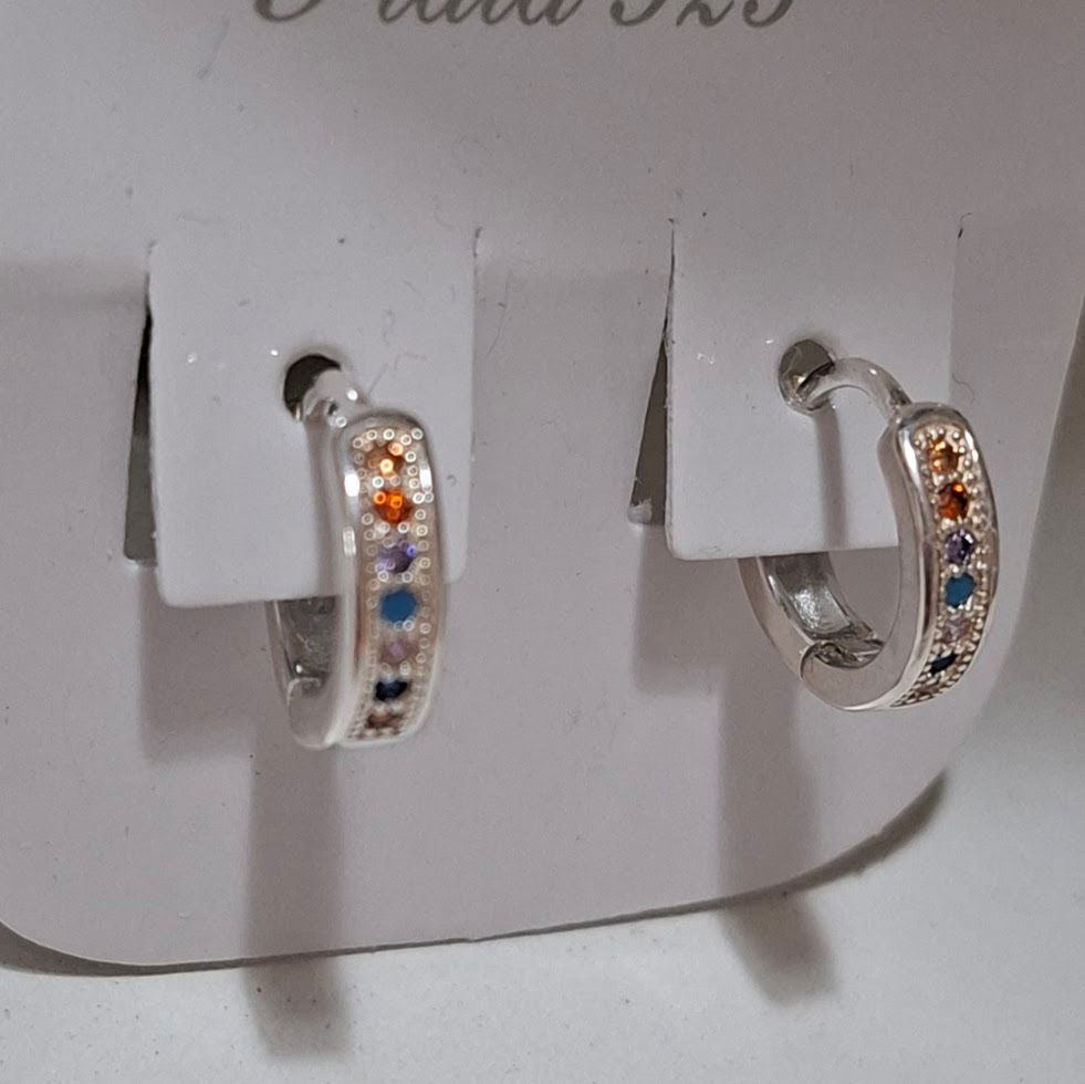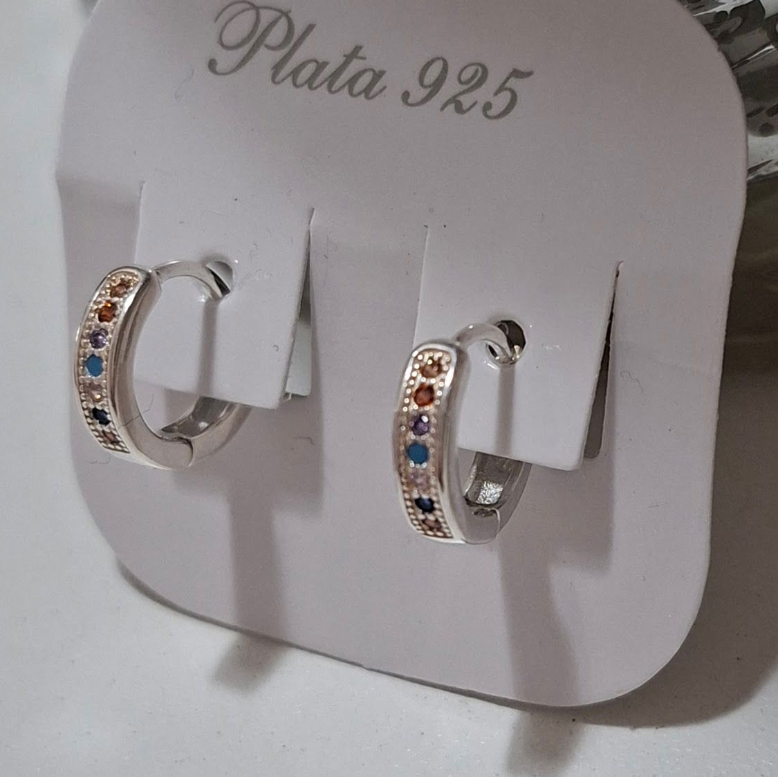 AROS ARGOLLA PLATA CRISTALES MULTICOLOR