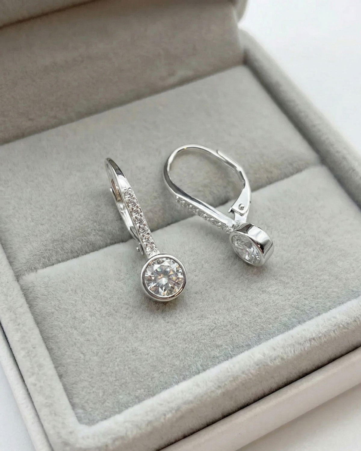 Aros tipo brisura en plata 925, con zircón Susano de brillo definido. Un diseño clásico, cómodo y seguro, ideal para uso diario sin resignar elegancia.