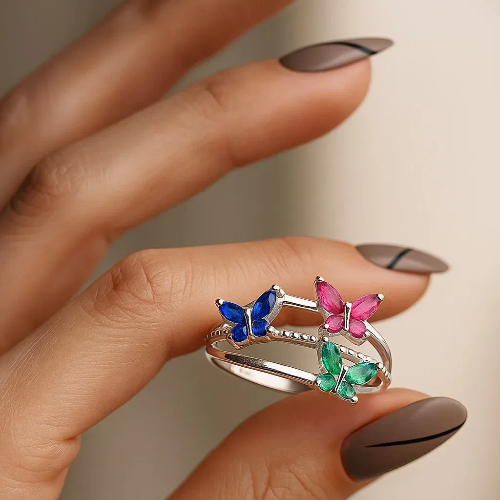 Un anillo delicado y femenino, con diseño de mariposas y zircones brillantes que aportan luz sin exagerar. Una pieza que suma detalle, movimiento visual y un toque romántico bien actual.
