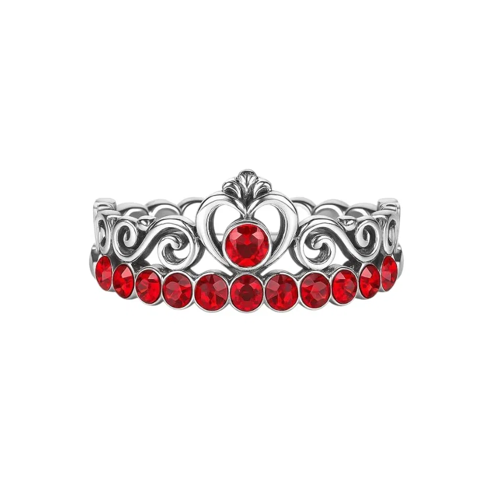 Un anillo elegante y femenino, con diseño estilo princesa y zircones de alto brillo en tonos rosa o rojo. Una pieza que suma presencia, color y sofisticación a cualquier look.