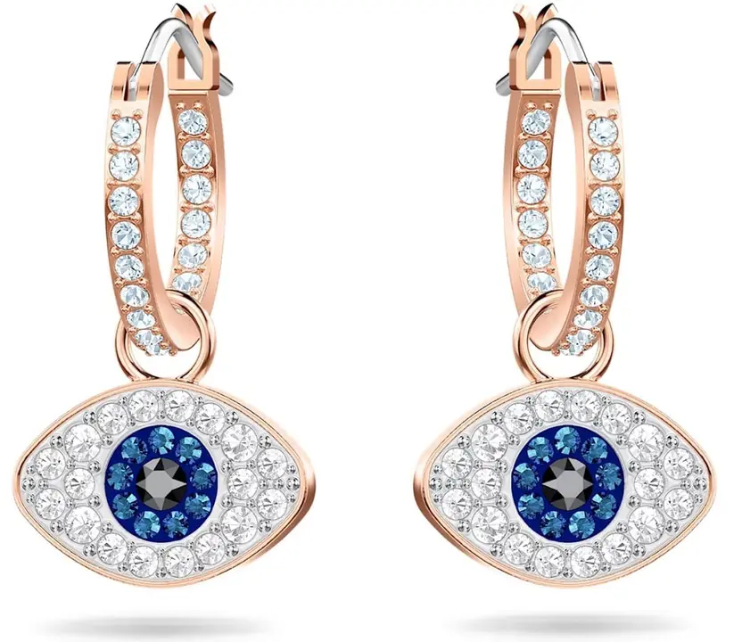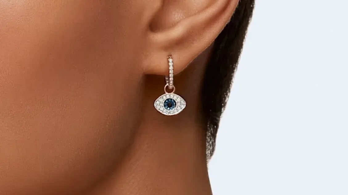 Un clásico con identidad fuerte. Estos pendientes de aro con ojo turco de Swarovski combinan pavé transparente con el icónico ojo turco azul, logrando un equilibrio perfecto entre glamour relajado y elegancia romántica.