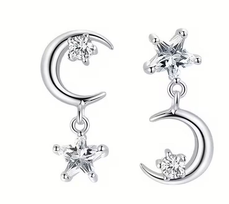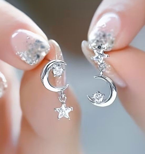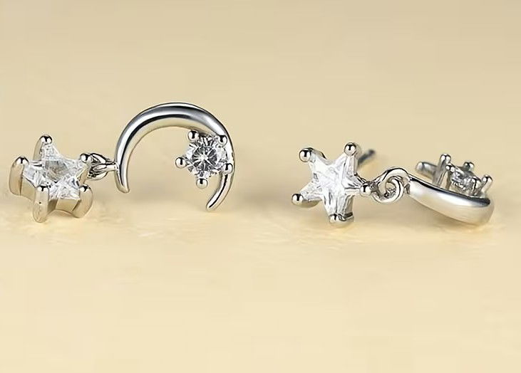 La luna y las estrellas colgantes aportan movimiento y un detalle delicado que realza cualquier look sin exagerar.