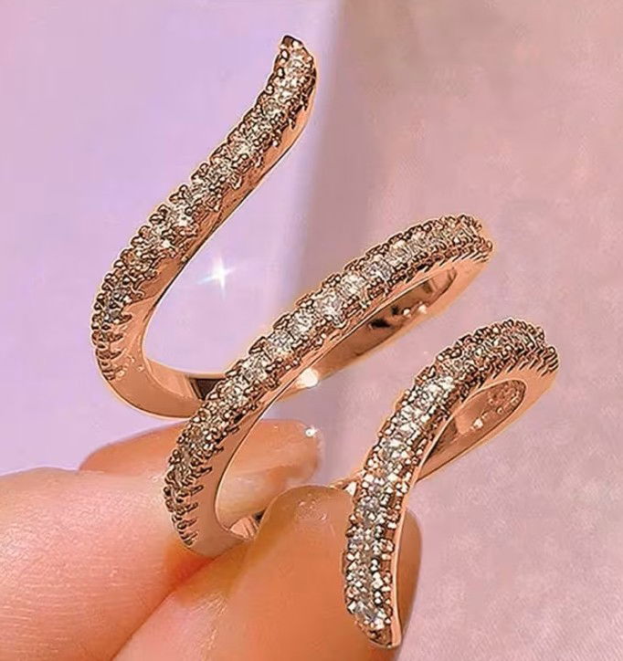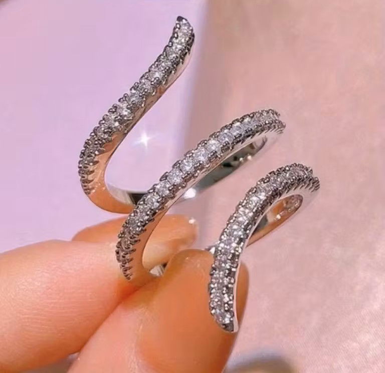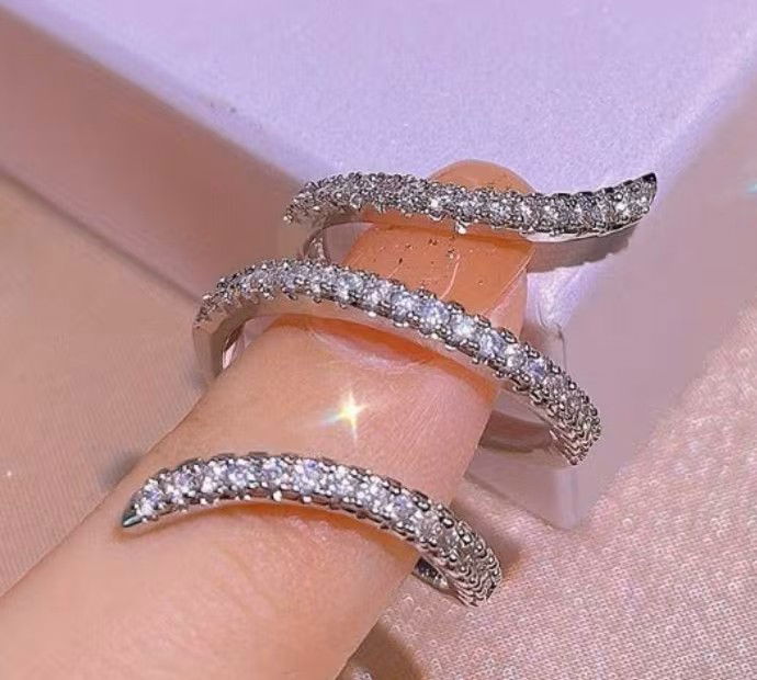 Un anillo que no pasa desapercibido. Su diseño de líneas entrelazadas crea un juego visual moderno y elegante, ideal para quienes buscan una joya distinta, con personalidad propia y un brillo sofisticado.