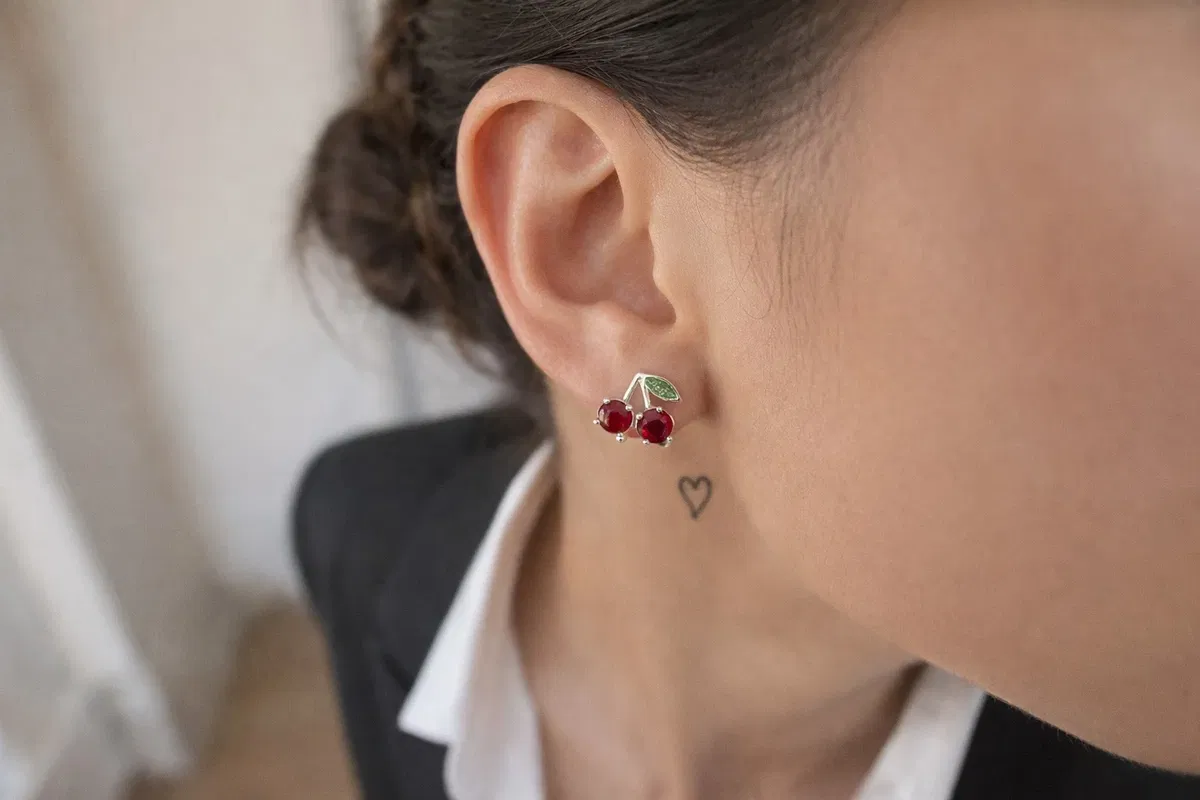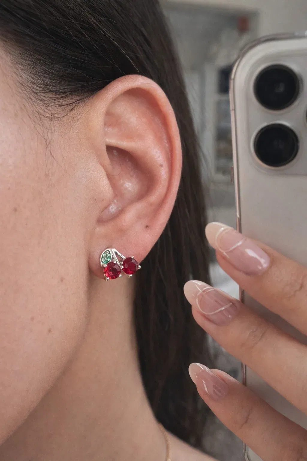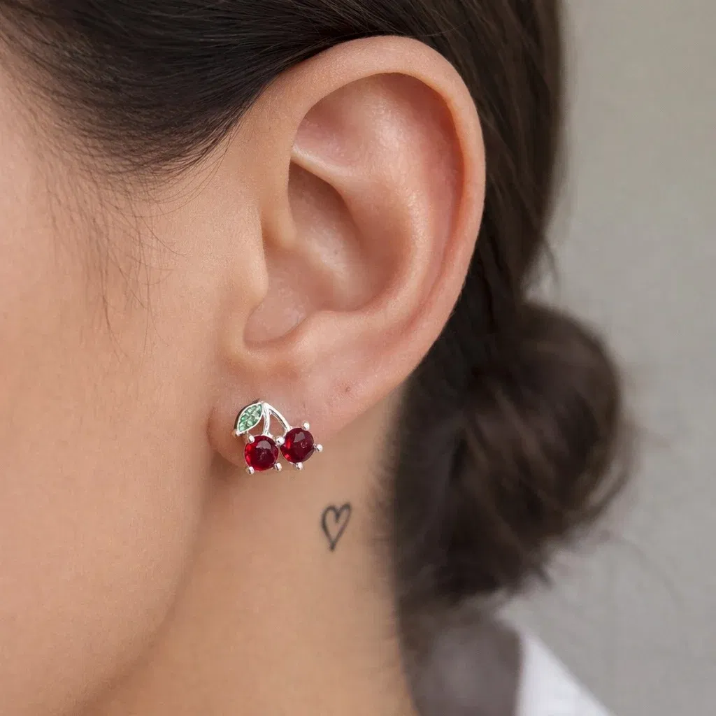 Los AROS pasantes de Plata 925 con diseño de cerezas y circones son una pieza de joyería clásica, femenina y con un toque divertido. Se caracterizan por combinar la elegancia del brillo del circón con un diseño frutal muy estético.