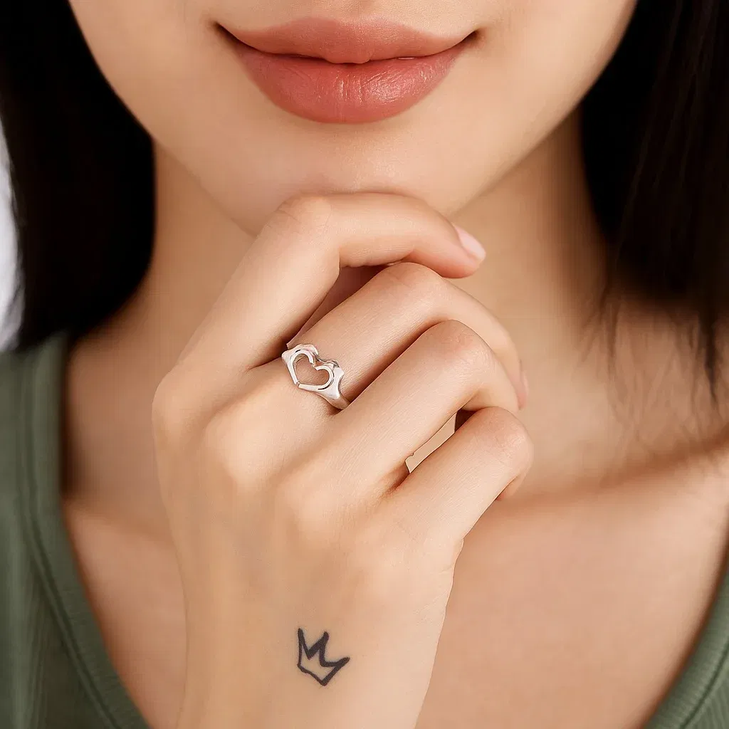 Un anillo de plata 925 con diseño de corazón, simple y elegante. Una pieza atemporal que funciona como gesto, como regalo o como detalle diario que suma sin esfuerzo.