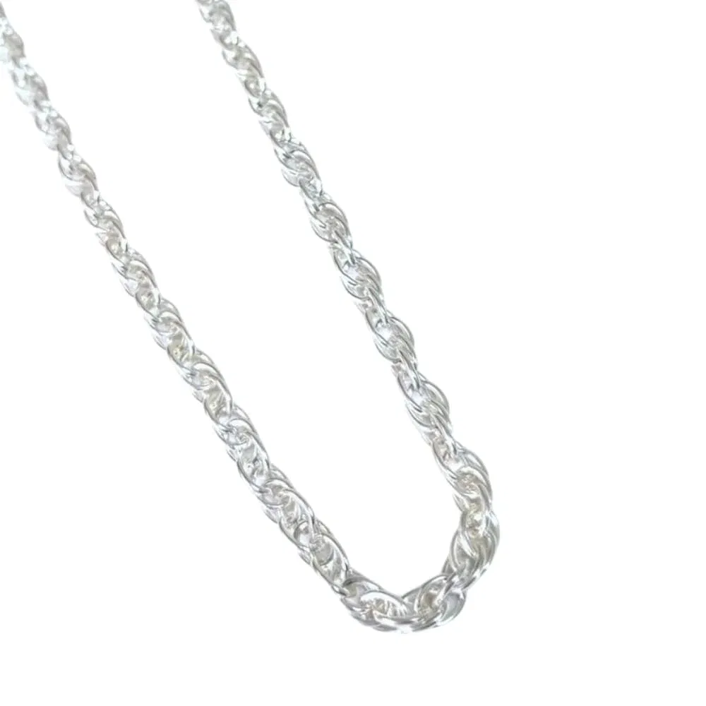 Clásica, con presencia y un brillo que se nota sin ser exagerado. Esta cadena Turbillón de Plata 925 tiene ese entramado que refleja la luz de manera espectacular y queda perfecta tanto sola como con dije. Con 60 cm de largo, es ideal si te gusta la caída más larga y elegante.