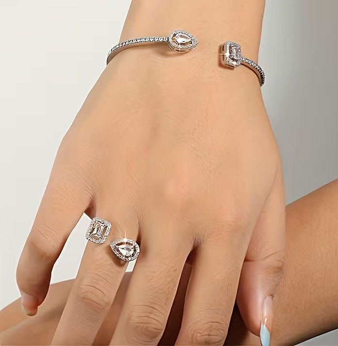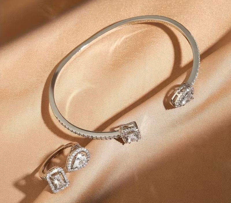 Esta pulsera tipo esclava combina la nobleza de la plata 925 con un delicado baño de rodio, realzada por un Zircon en sus extremos 2 zircones y cristales micropavé que aportan brillo parejo y sofisticado, sin exagerar.