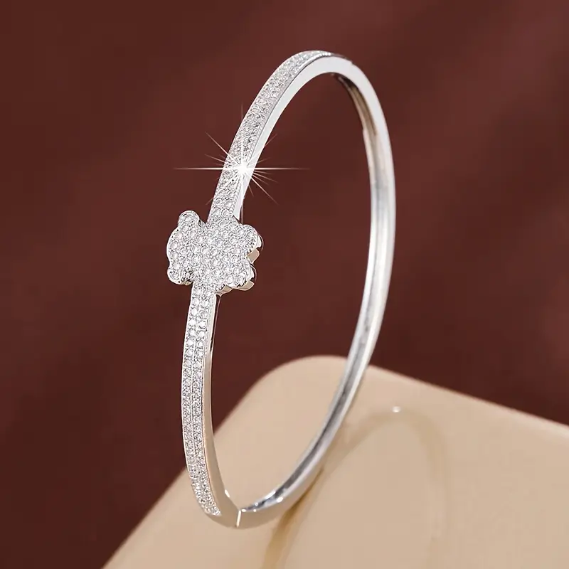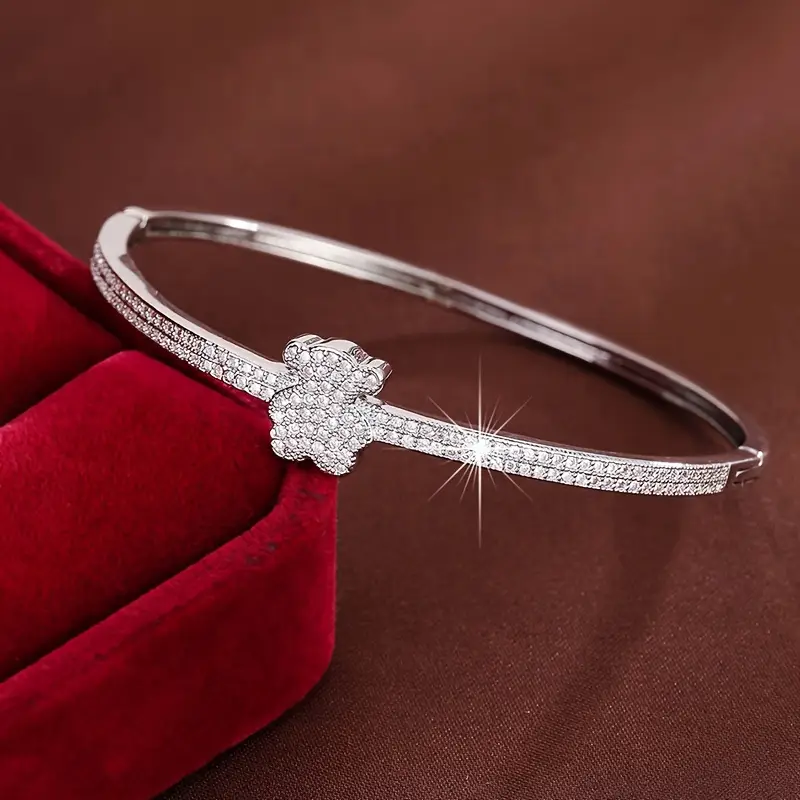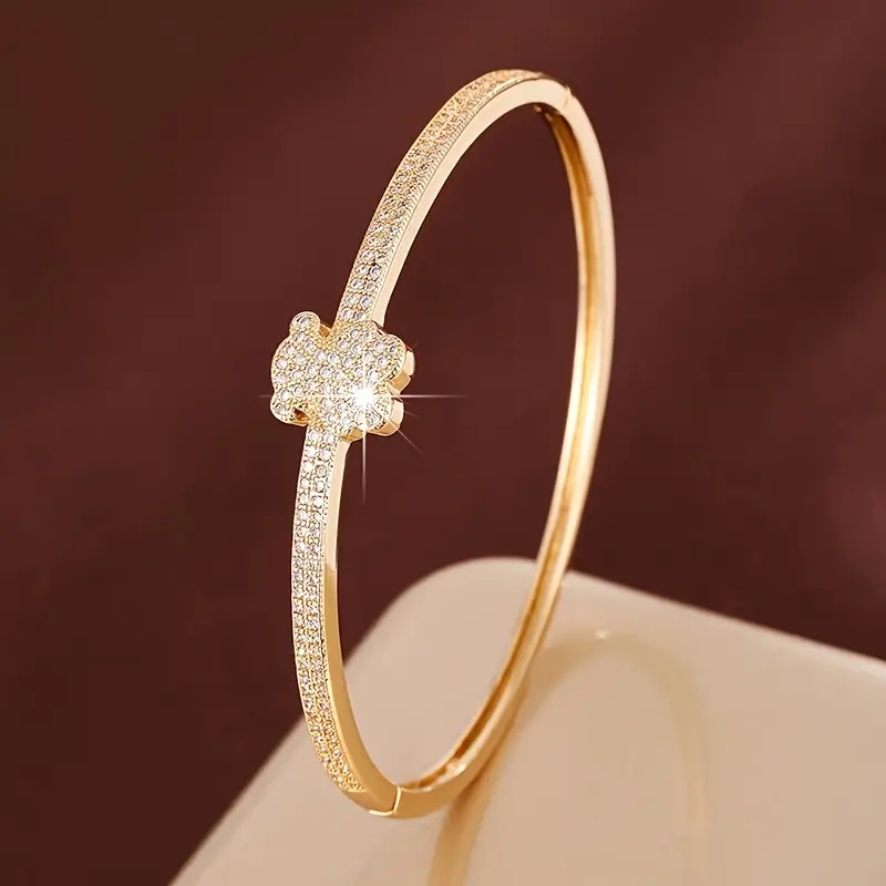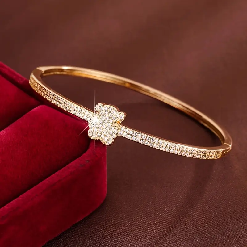 Un detalle tierno y sofisticado en la muñeca. Esta pulsera tipo brazalete con oso incrustado en circonita cúbica (CZ) aporta brillo sutil, líneas limpias y un símbolo encantador que combina con todo. ✨🐻