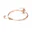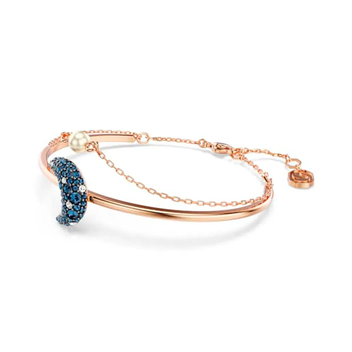 El modelo Sublima de doble banda combina una pulsera rígida bañada en tono oro rosa con una delicada cadena que termina en una perla blanca, logrando un equilibrio perfecto entre sofisticación y frescura.