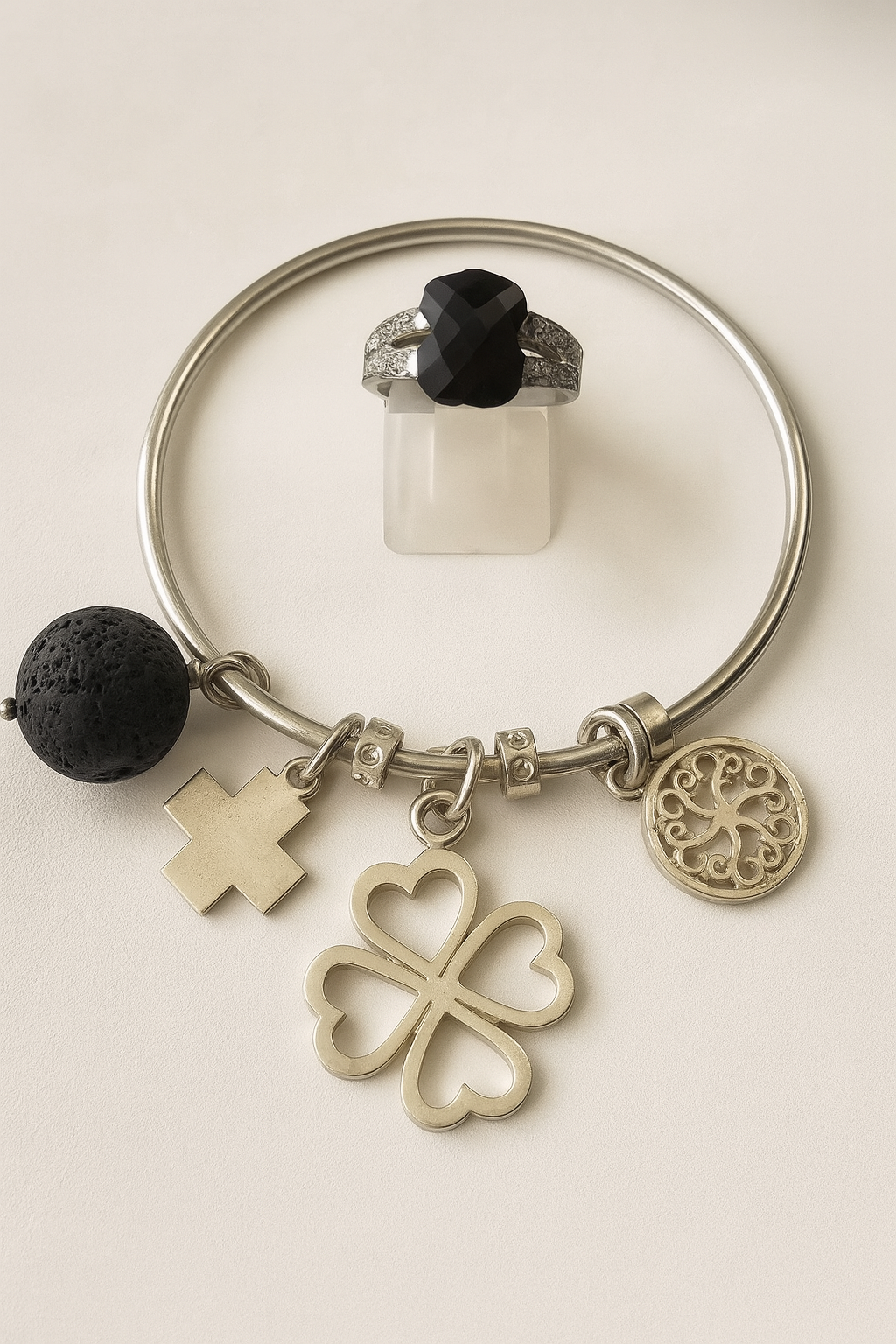 • Dijes: 3 de plata + 1 de piedra ónix