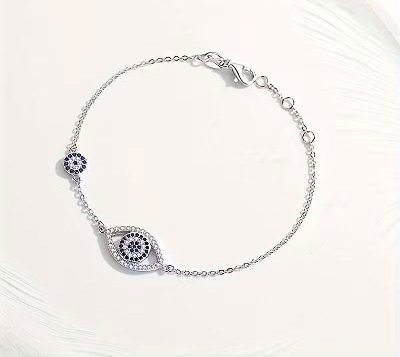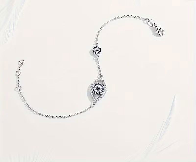 Esta pulsera de plata 925 con baño de rodio incorpora un dije de ojo turco, símbolo de protección, energía positiva y buena fortuna. Una pieza que combina intención, diseño y presencia real.