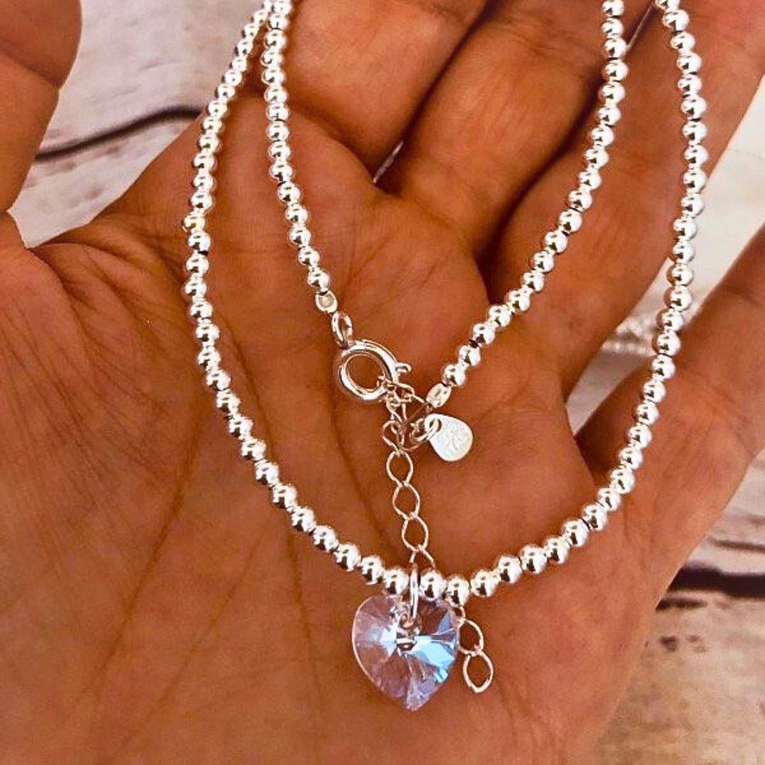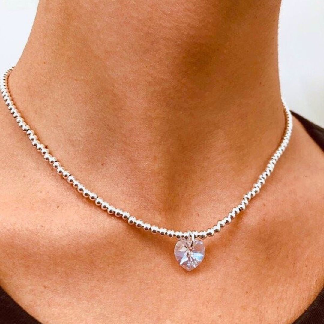 El Collar de bolitas en Plata 925 con dije corazón de (Cristal Auténtico de Austria®) combina delicadeza, elegancia y un toque de brillo sutil. Ideal para realzar cualquier outfit, desde el más casual hasta el más especial.