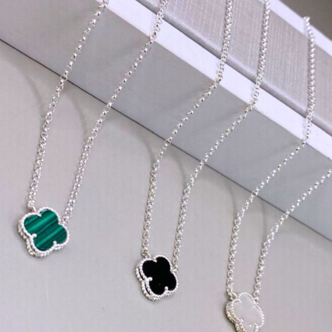 El Collar en Plata 925 con dije estilo Van Cleff es sinónimo de elegancia refinada. Su diseño delicado con detalles en micropavé brilla con sutil intensidad, aportando un toque sofisticado a cualquier outfit.
