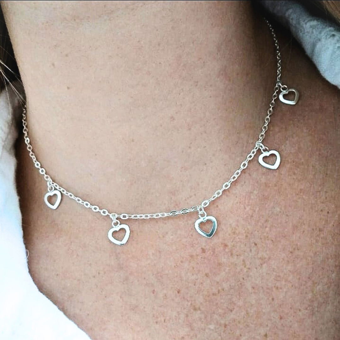 • Diseño: Choker con dijes de corazones calados