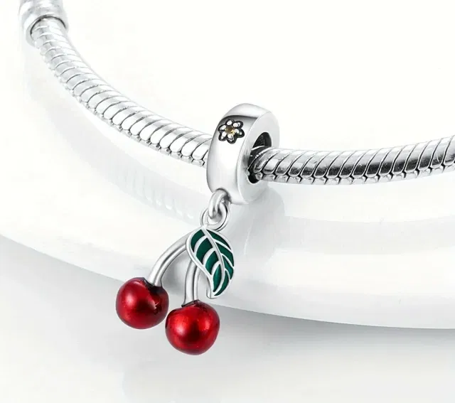 El Charm Cereza en plata 925 es un accesorio encantador y sofisticado, diseñado para sumar un toque fresco y brillante a tu estilo. Elaborado en plata 925 de alta pureza, combina esmalte rojo vibrante con circonias cúbicas que reflejan la luz con destellos deslumbrantes (cubic zirconia).