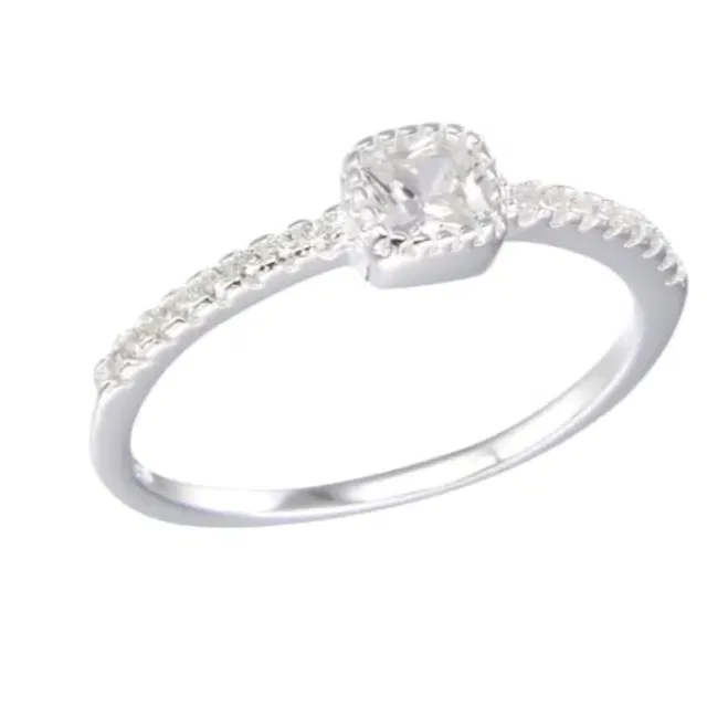 El Anillo Cintillo está elaborado en plata 925 de alta calidad y destaca por su diseño sofisticado. En el centro incorpora una circonia cúbica de corte cuadrado, cuidadosamente engarzada, que se complementa con circonias cúbicas adicionales en los laterales, aportando un brillo elegante y equilibrado.