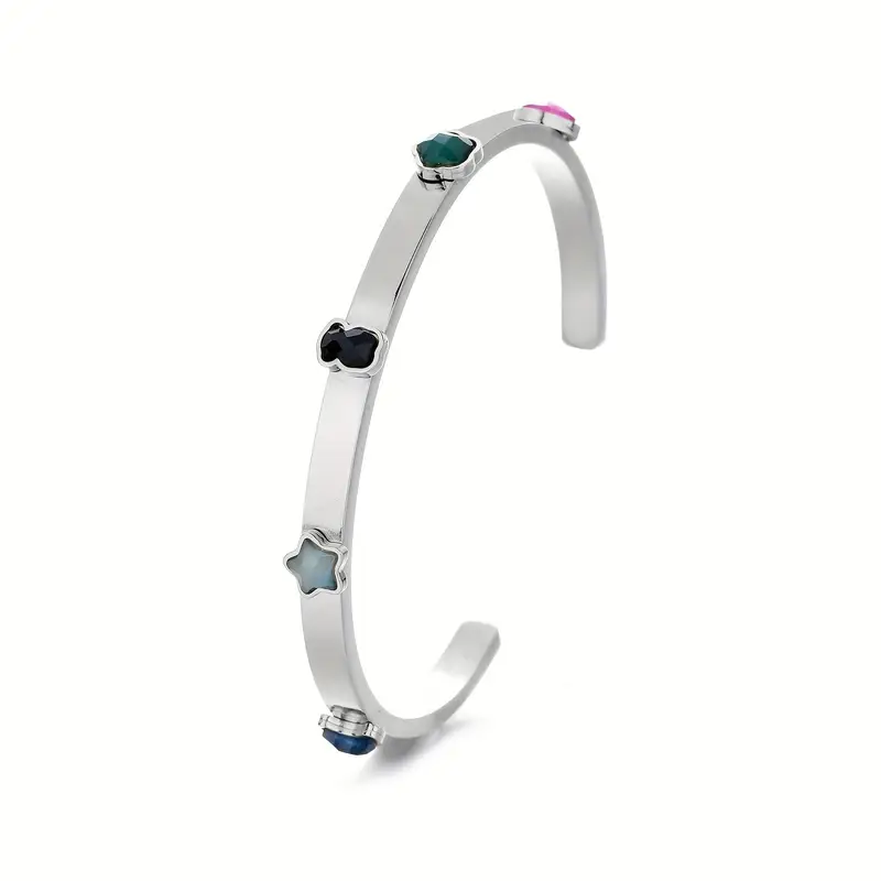 Perfecta para usar sola o acompañada de otras pulseras, iluminando cualquier outfit con un toque distintivo de lujo accesible.