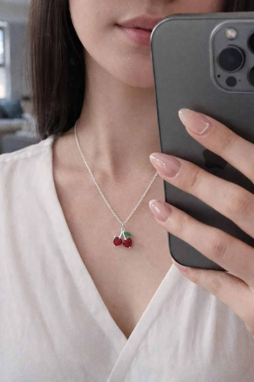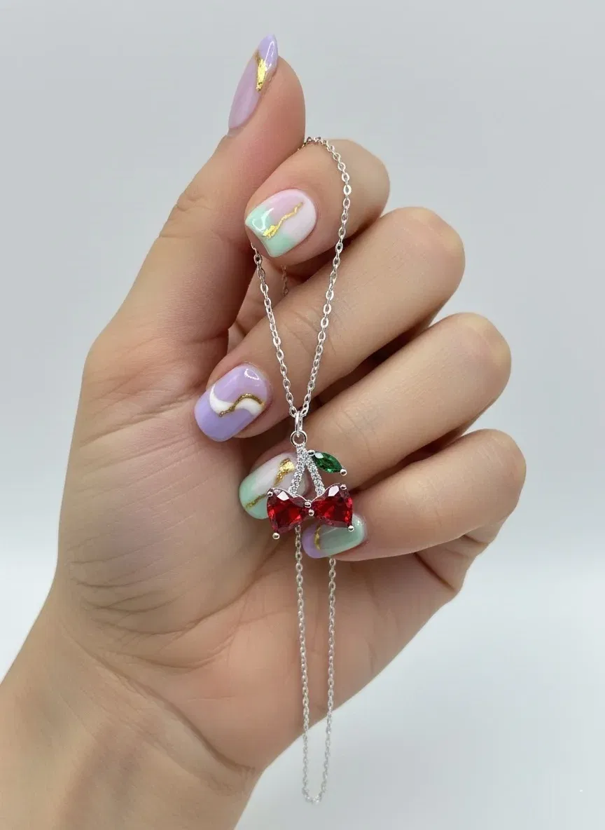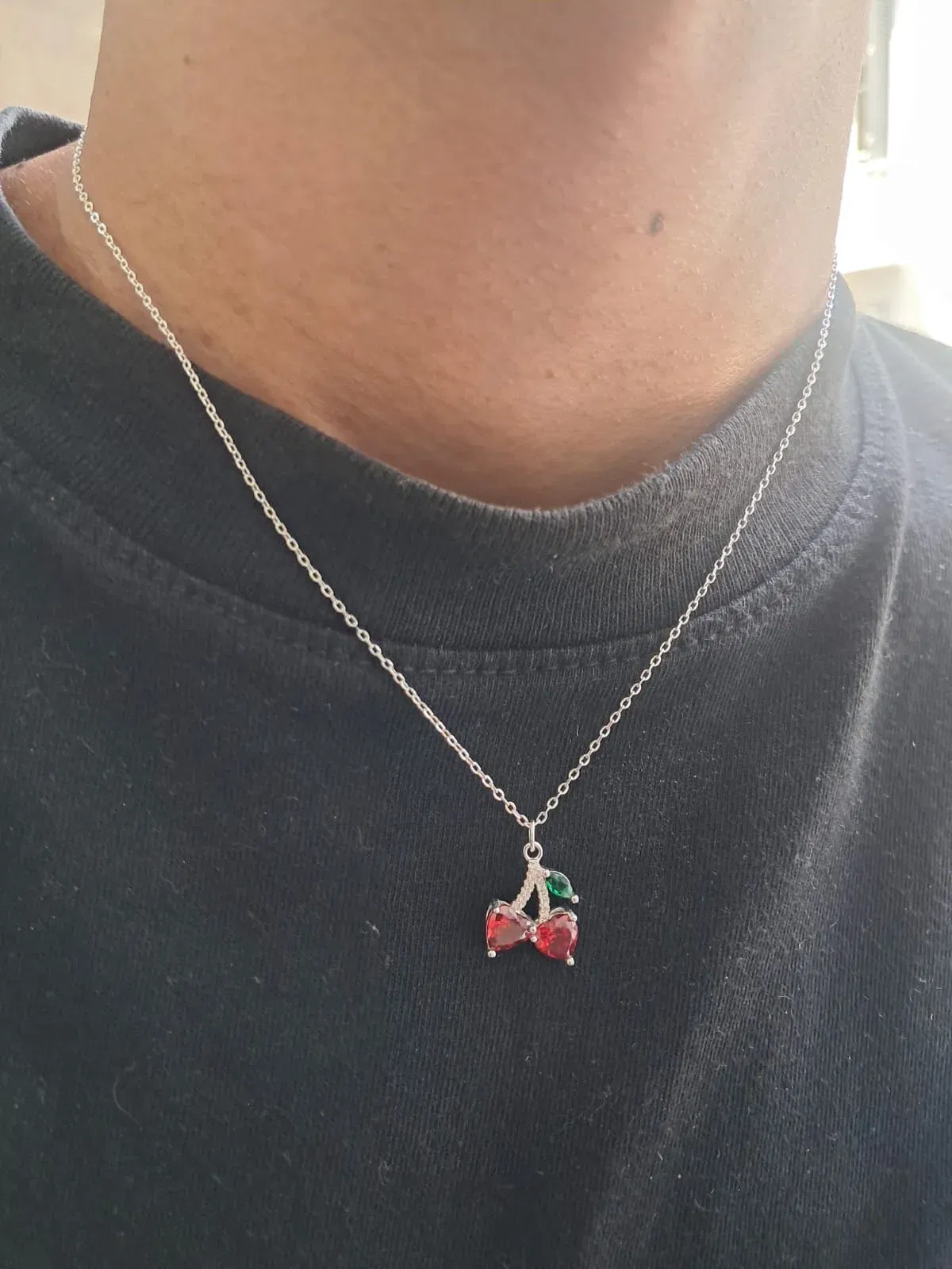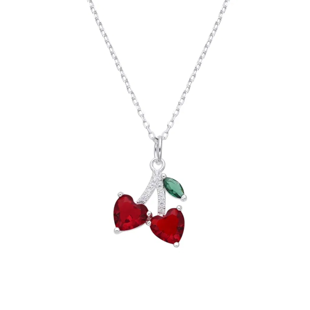 Un collar de cerezas en plata 925 con zircones es una pieza de joyería coquette, femenina y atemporal. Este diseño suele combinar la elegancia del metal precioso con el brillo de las piedras y, a veces, toques de color vibrantes.