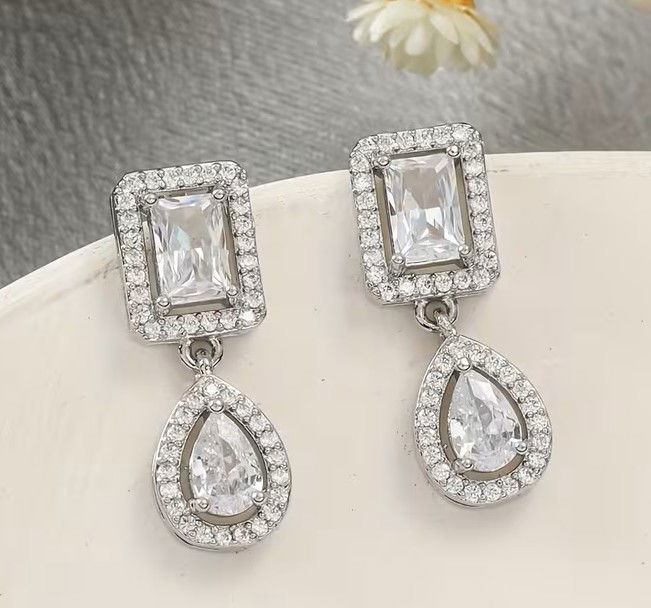 Elegantes, femeninos y con brillo bien distribuido. Estos aros colgantes de Plata Rodinada combinan dos zircones con detalle micropavé, logrando un efecto luminoso y sofisticado, ideal para realzar cualquier look sin exagerar.