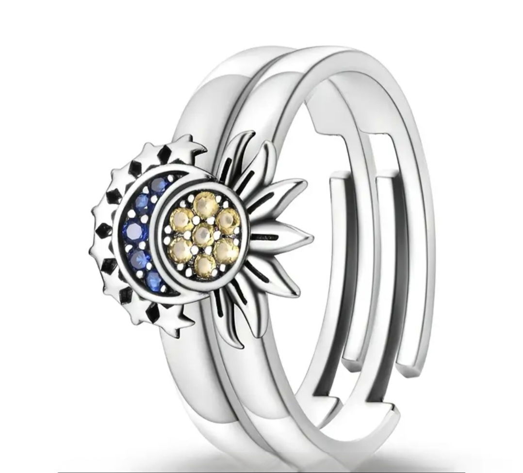 El Anillo Sol y Luna simboliza la dualidad entre la fuerza del día y la calma de la noche. Fabricado en plata de ley 925, su diseño abierto representa al sol, la luna y las estrellas, creando una pieza versátil, moderna y cargada de significado.
