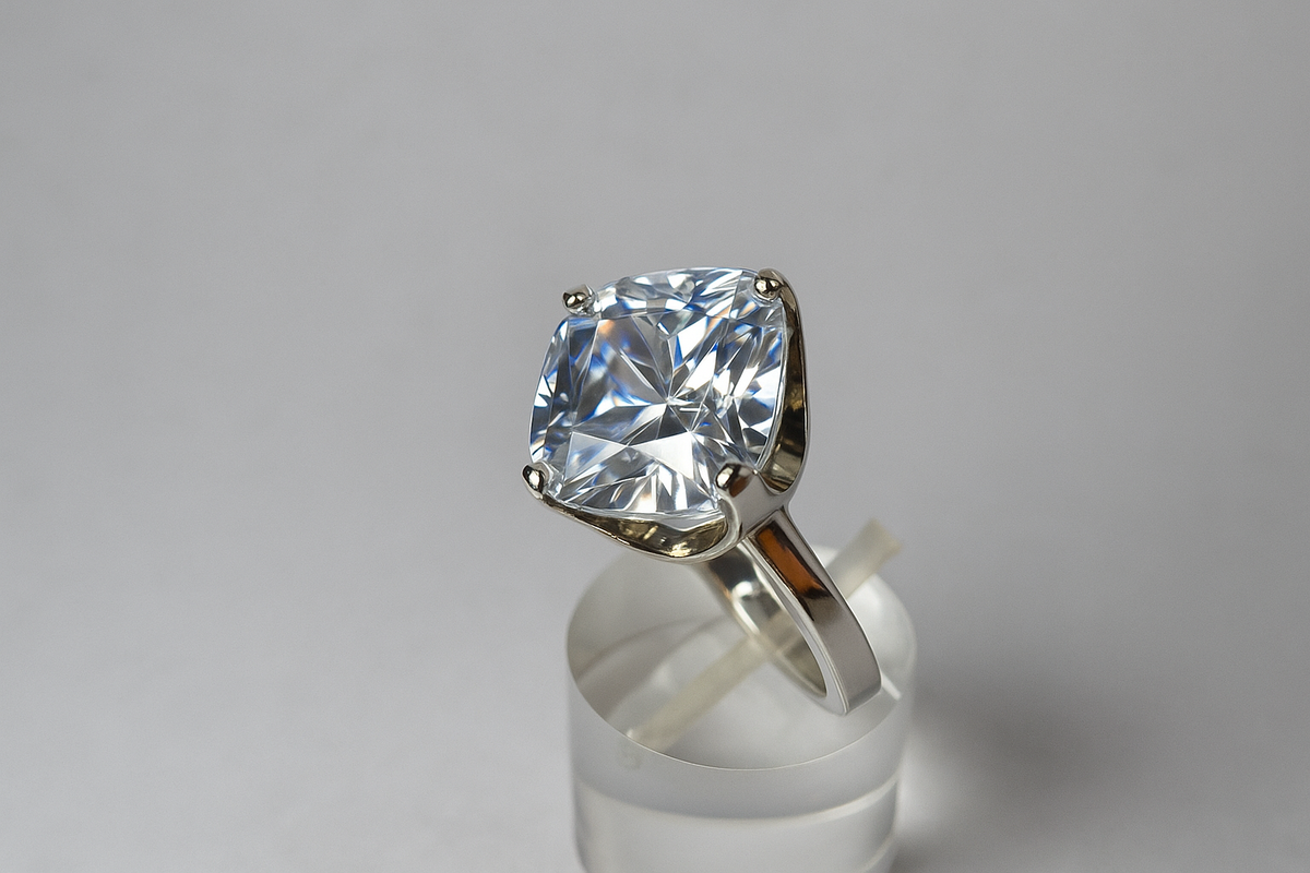 Descubrí el brillo imponente del Anillo LUA ÉCLAT, una joya en plata 925 que resalta por su diseño sofisticado y su protagonista absoluto: un circon tallado en cushion cut.