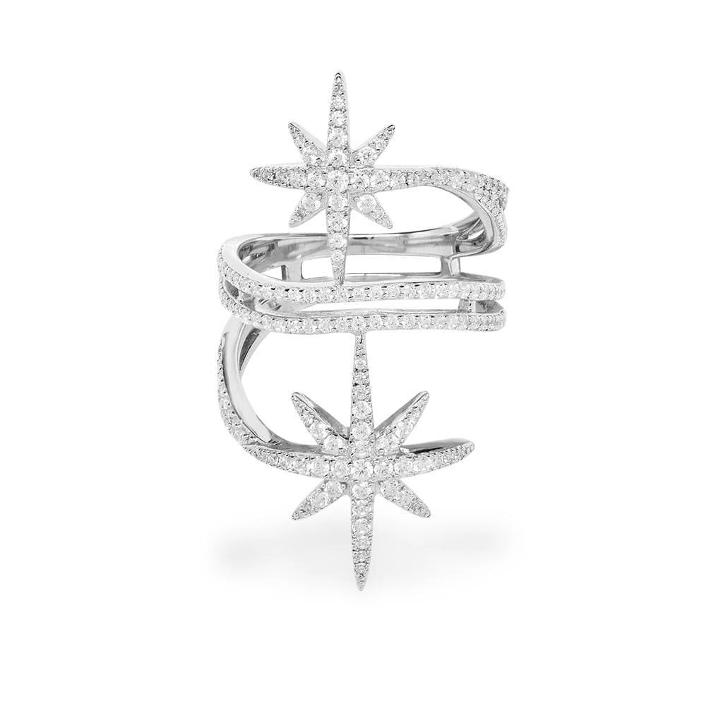 Descubrí la magia del Anillo Estrella e Infinito, una joya confeccionada en plata 925 rodinada, con diseño abierto y regulable. Sus detalles en zirconia cúbica y micropavé realzan el brillo de un símbolo de infinito central rodeado por delicadas estrellas.