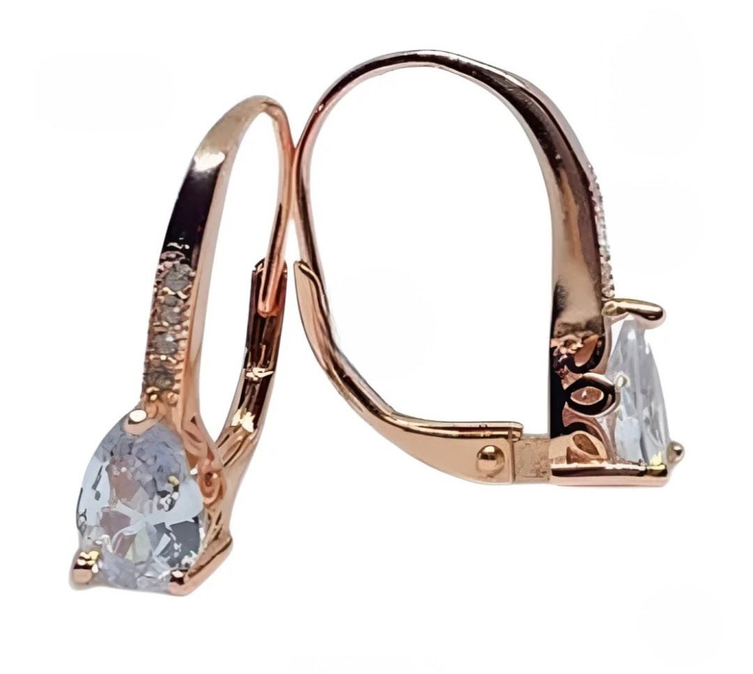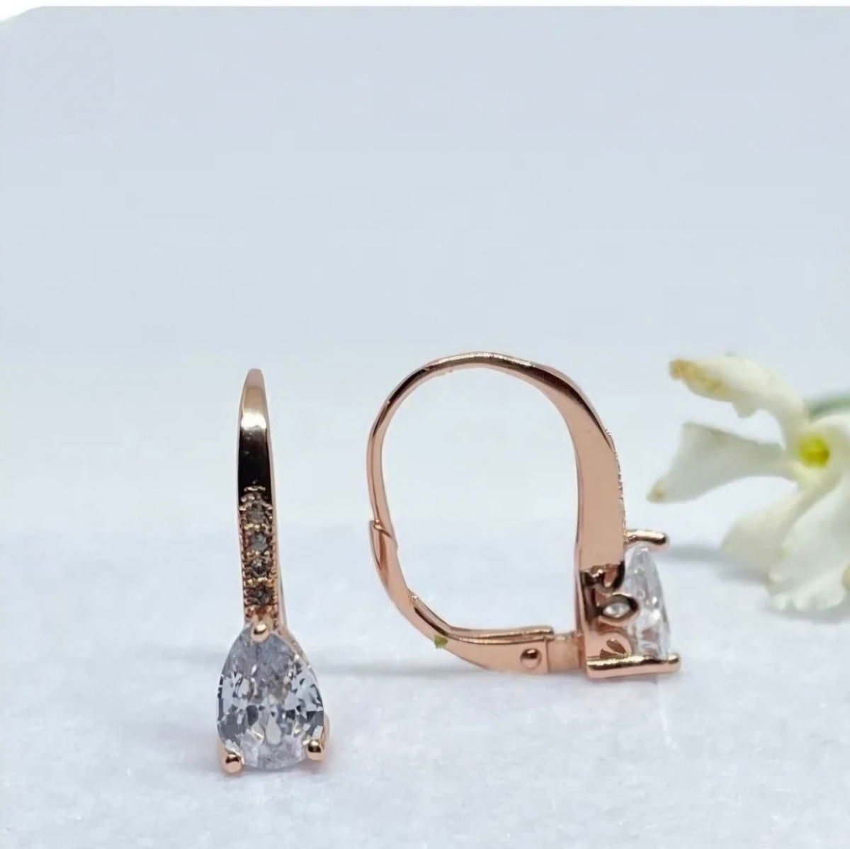 Aros finos, prolijos y con brillo del bueno. Estos aros de Plata 925 en tono Rose vienen con cierre italiano (de los más cómodos y seguros) y un zircon en forma de gota que aporta luz sin exagerar. Quedan elegantes tanto para todos los días como para una salida.