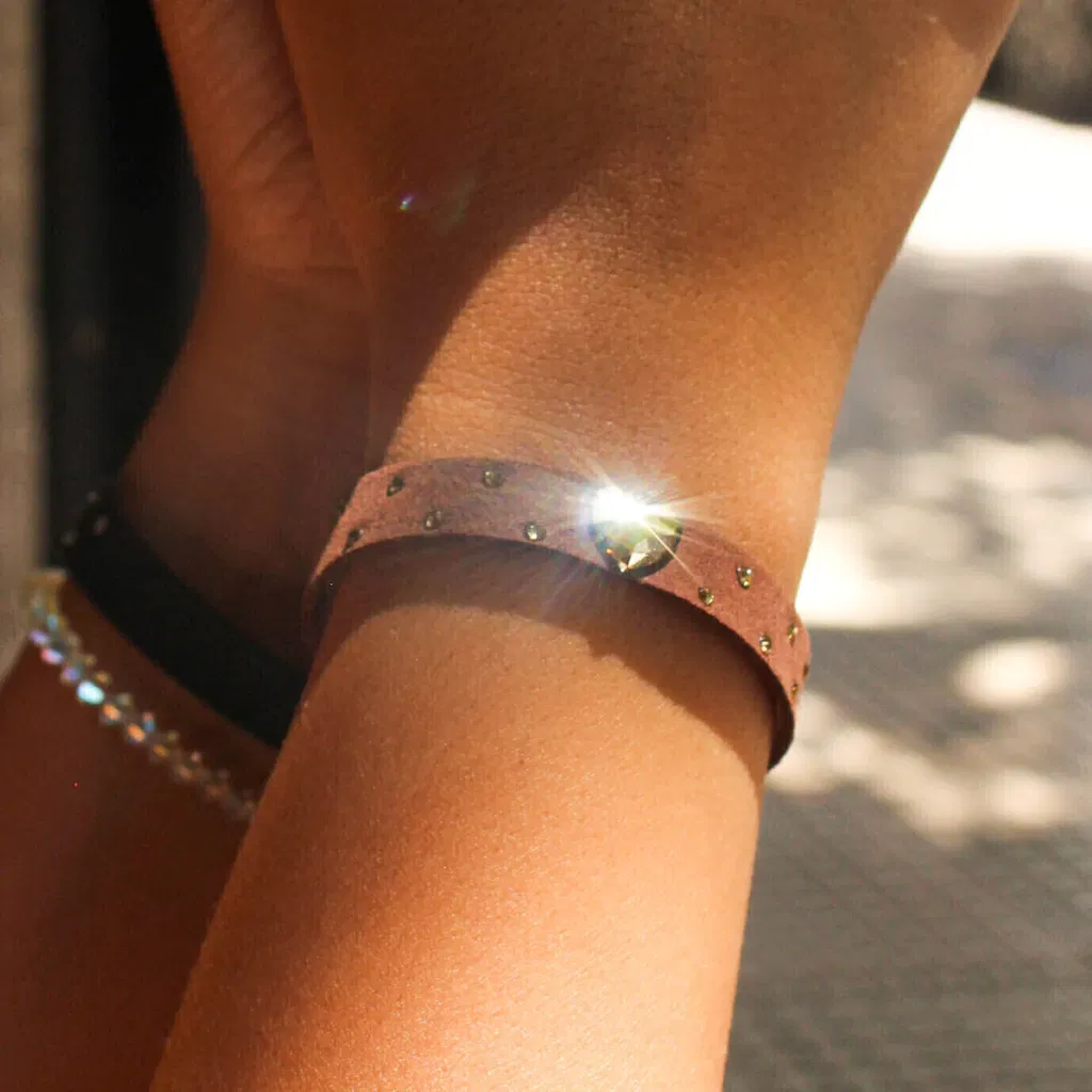 Pulsera de gamuza con cierre a botón y diseño urbano.