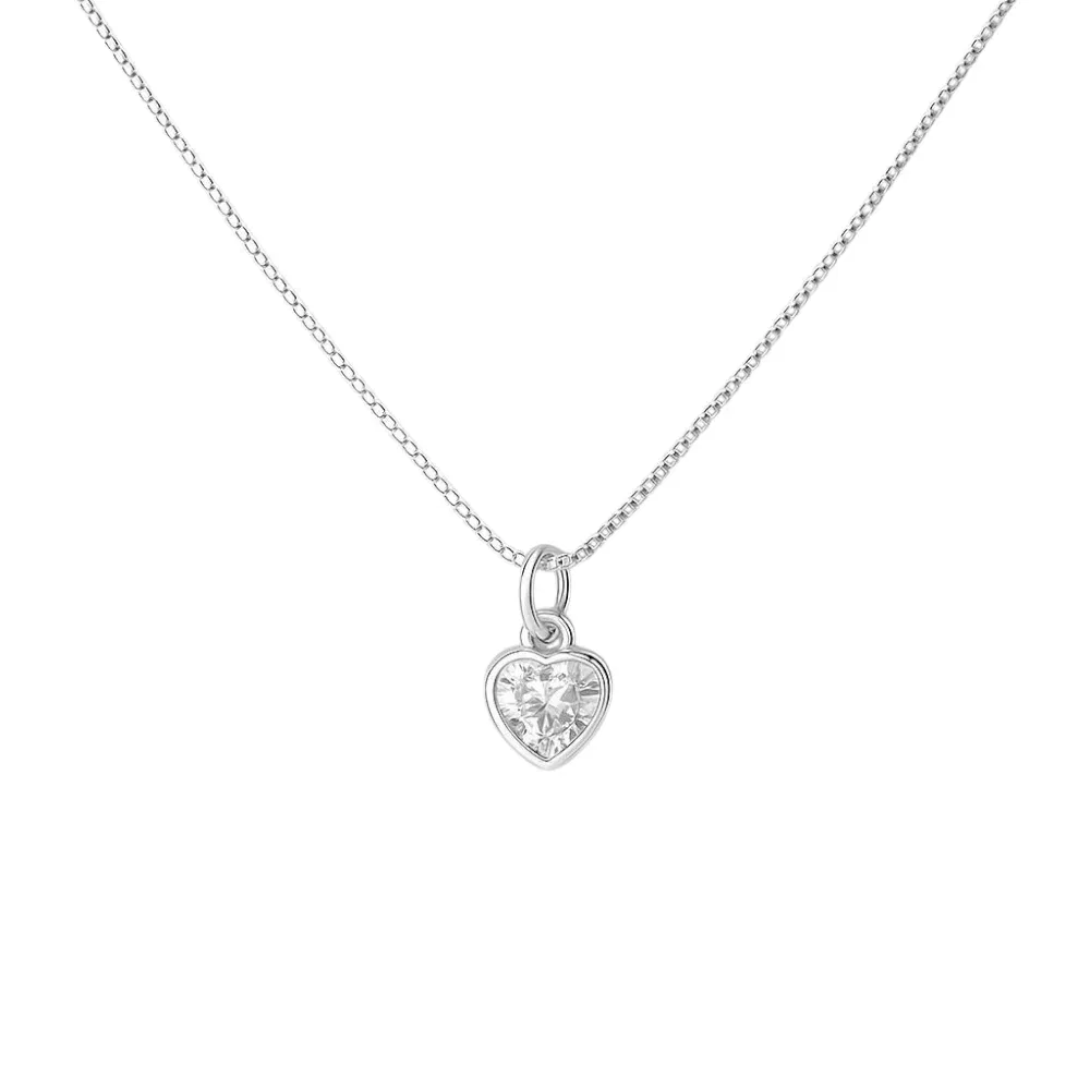 Conjunto de plata 925 con diseño de corazón y piedra cubic zirconia de 5 mm. Incluye collar con dije y aros a juego. Un clásico elegante, fácil de usar todos los días y también en ocasiones especiales.