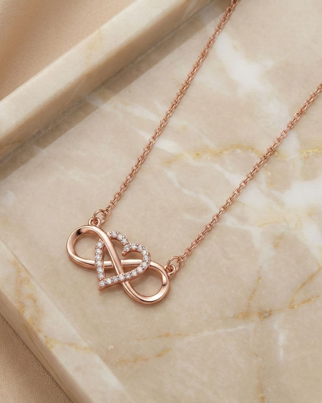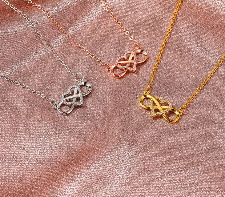 Un clásico que no falla: símbolo infinito + “amor”, en versión elegante y con brillo fino gracias al micropavé. Es ese collar que te ponés y ya queda “armado” el look, sin exagerar.