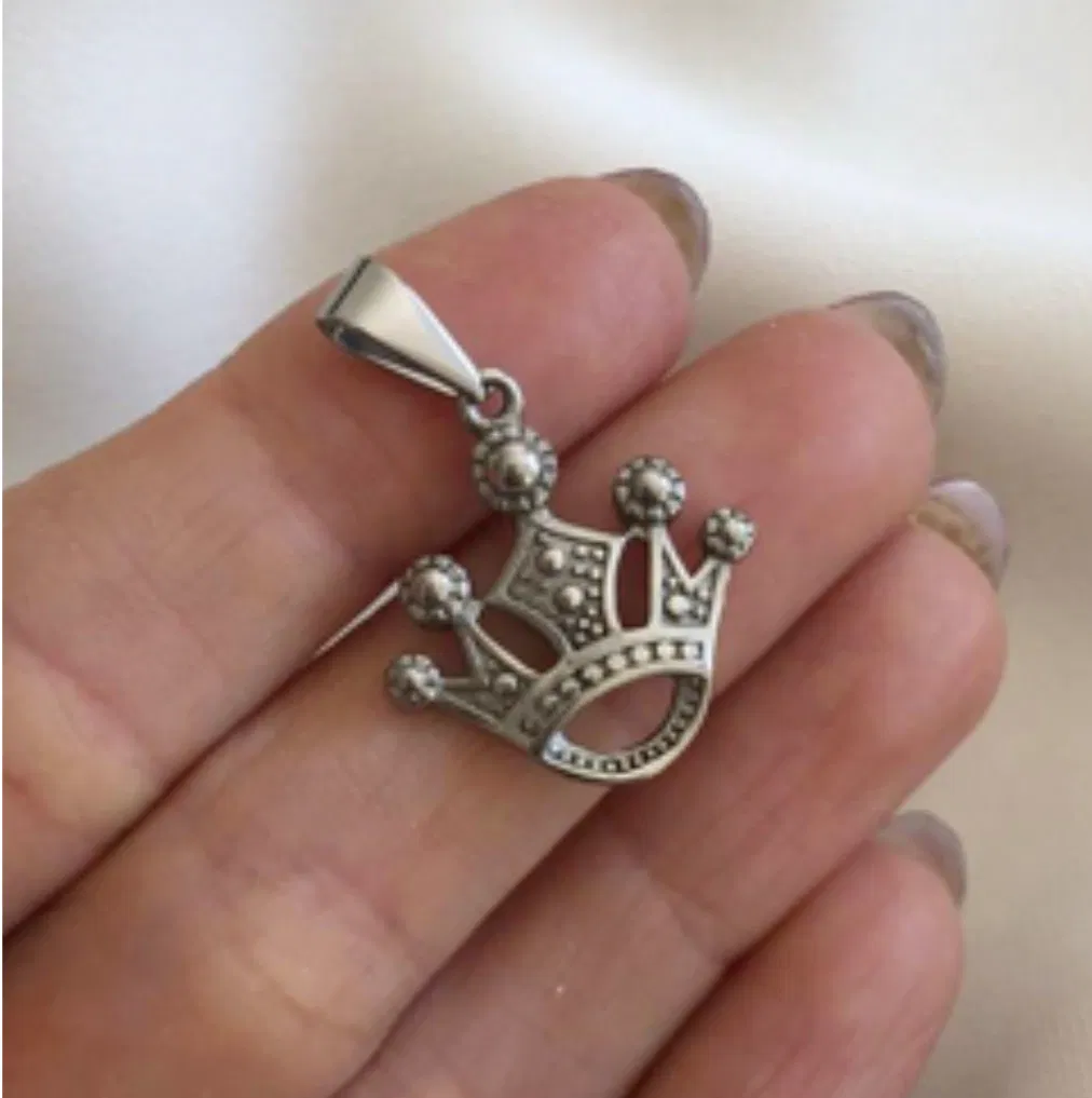El dije corona de acero es más que un accesorio: es una declaración de estilo con carácter. Con un diseño trabajado y dimensiones de 22 mm x 28 mm, esta joya aporta ese detalle distintivo que transforma cualquier look en algo memorable.
