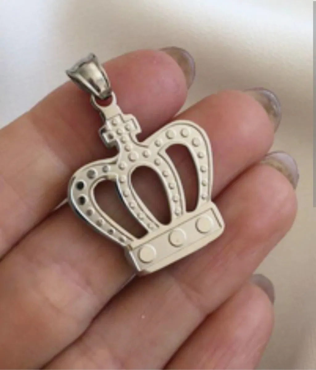 Este dije de corona en acero de alta calidad fusiona estilo y simbolismo. Con un tamaño destacado de 25 x 35 mm, es el accesorio ideal para quienes buscan marcar presencia con elegancia y personalidad.