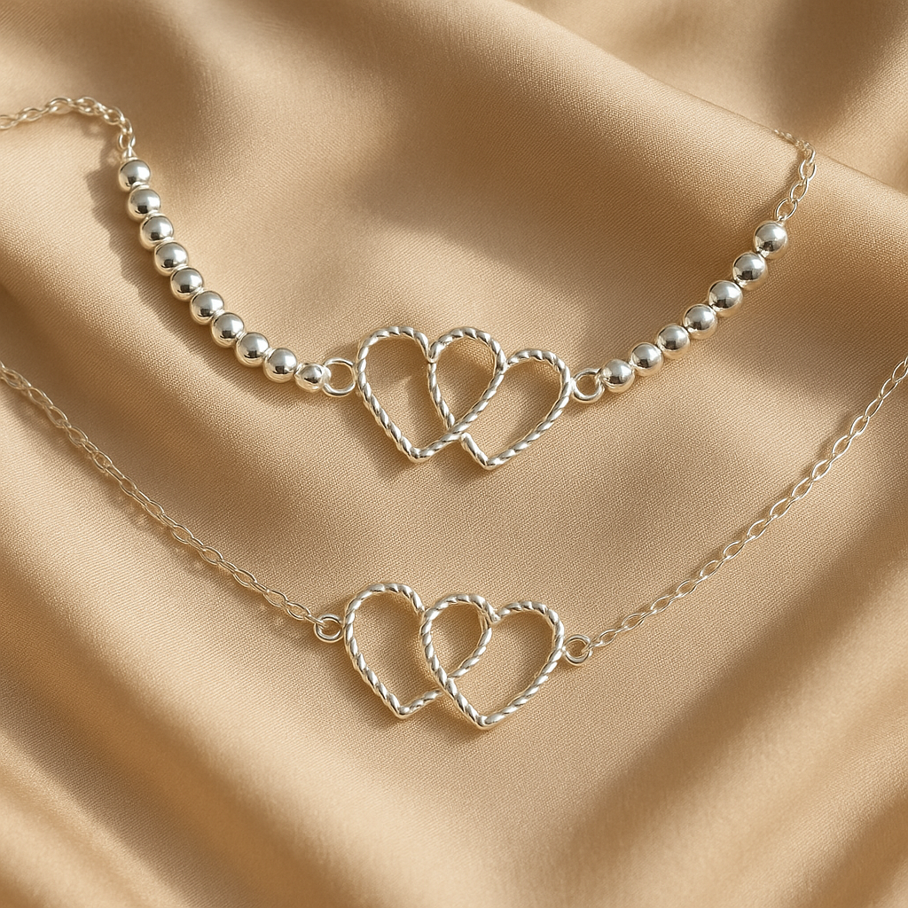 La Pulsera Doble Corazón Enlazado es más que una joya: es un emblema de conexión profunda. Cada corazón entrelazado representa un lazo único, imposible de romper.