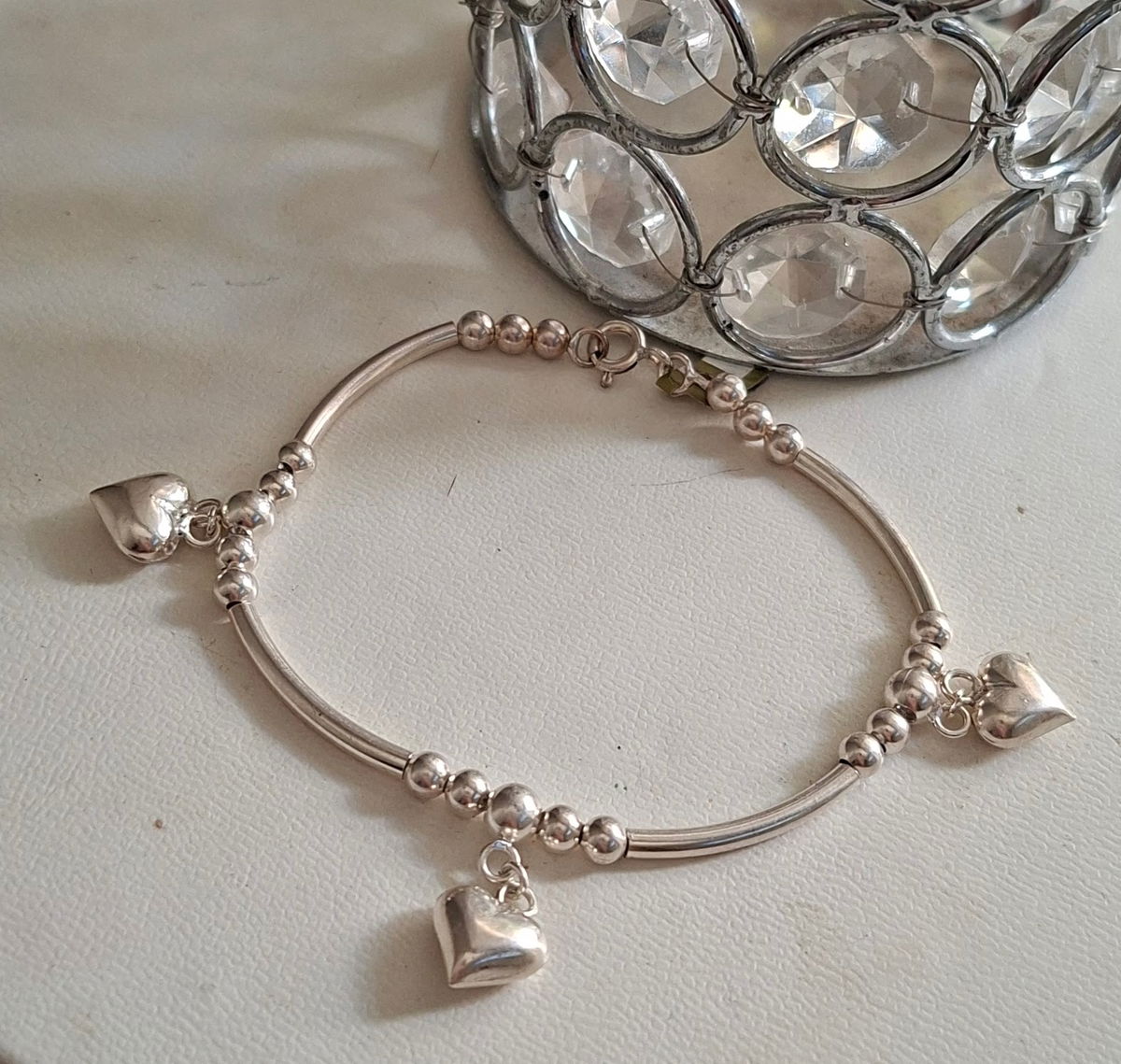 Cada corazón simboliza amor, conexión y ternura, convirtiendo a esta pulsera en una pieza ideal para acompañar tus días o para regalar a alguien especial.