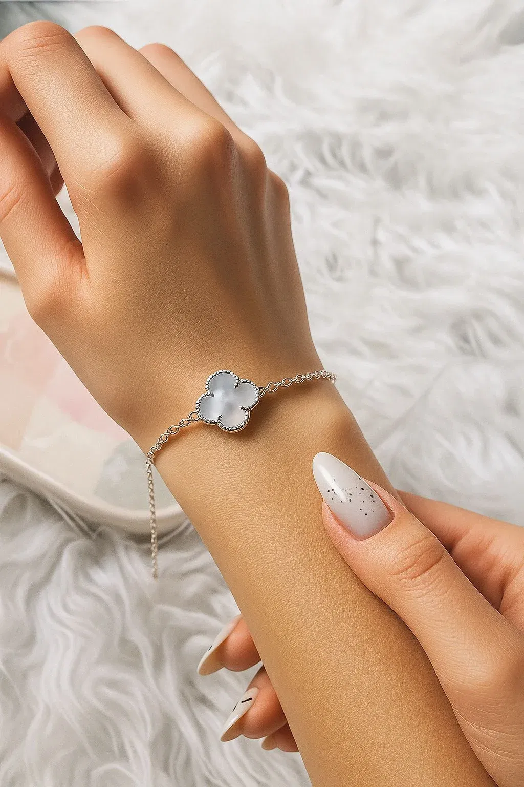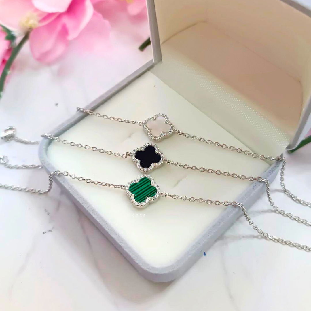 La Pulsera en Plata 925 con dije estilo Van Cleef y detalles en micropavé es esa joya que habla sin esfuerzo. Femenina, sofisticada y versátil, aporta luz y carácter a cualquier outfit.