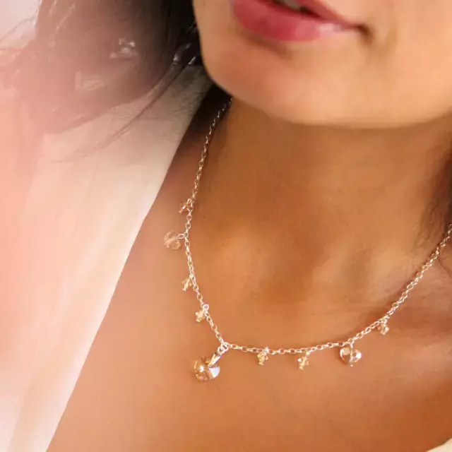 El Collar Lua combina una cadena de Plata 925 con Cristales auténticos de Austria® (Swarovski), logrando una pieza delicada y sofisticada que realza cualquier look. Su extensión y terminal decorados con cristal aportan un plus de luminosidad en cada movimiento. 💎