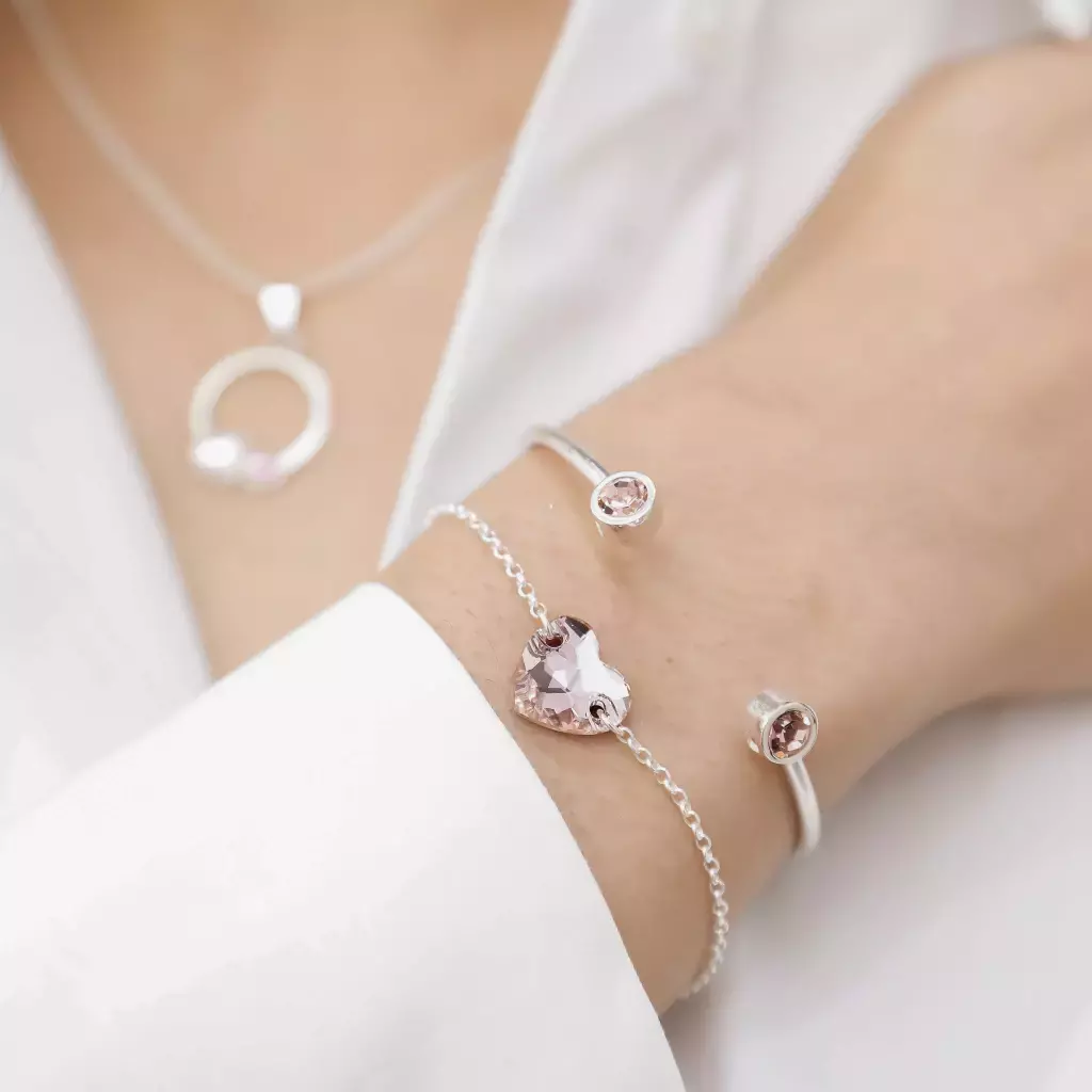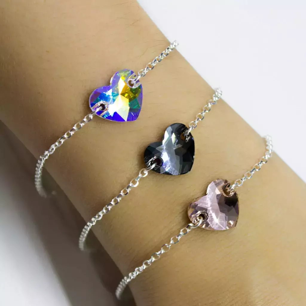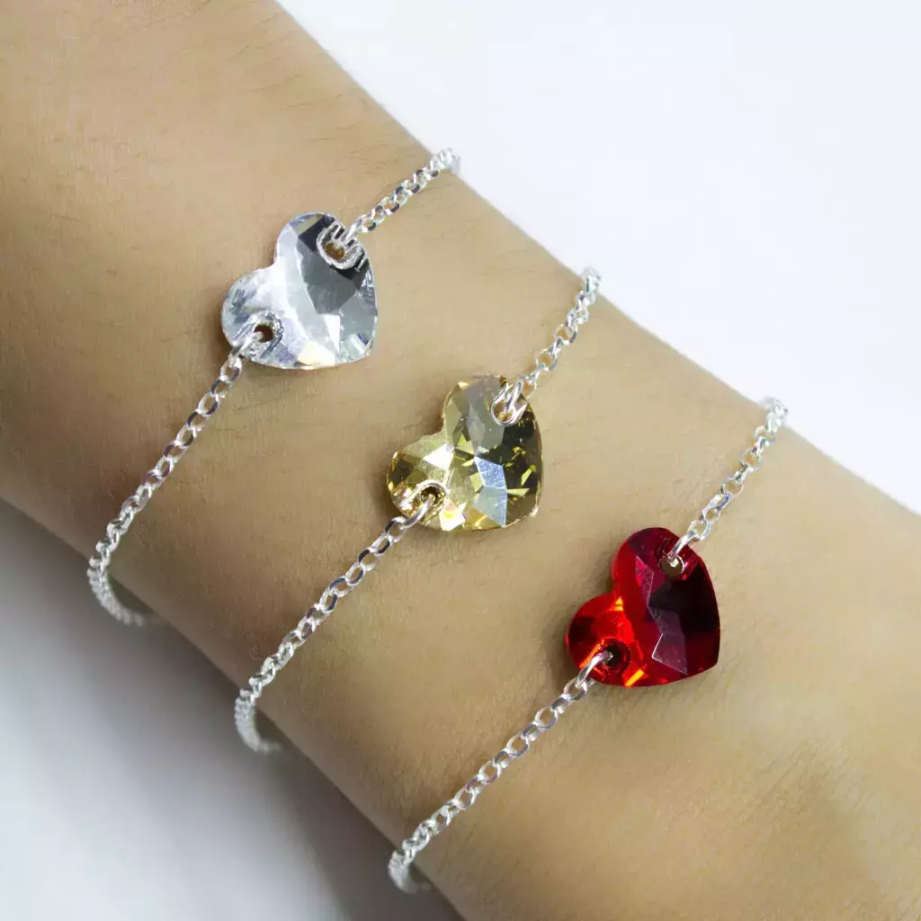 Confeccionada en Plata Italiana 925 y un corazón de cristal Swarovski auténtico de Austria®, esta pulsera combina brillo y simbolismo en una joya delicada y femenina. Ideal para regalar o sumar a tu colección.