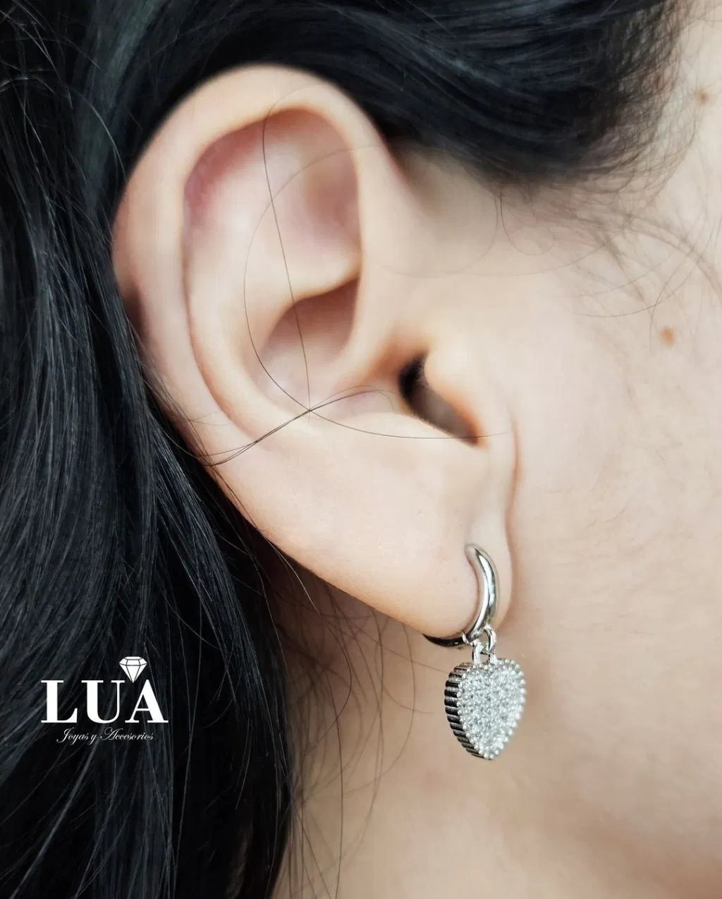 Sumá un toque de brillo y dulzura con este aro de plata 925, compuesto por una argolla de 10 mm y un dije corazón con cristales micropavée del mismo tamaño. Ideal para usar solo o combinar con otros modelos.