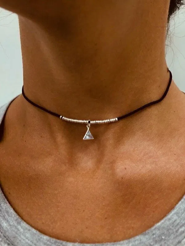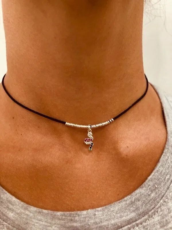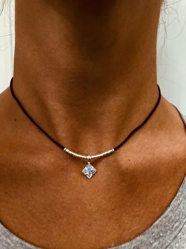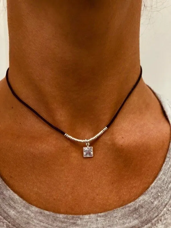 Este choker de seda negra redefine la elegancia: un diseño delicado y sofisticado, realzado por terminaciones en plata 925 y dijes de zirconias que aportan destellos sutiles al cuello. Ideal para usar solo o combinar con otras cadenas para un look más audaz.