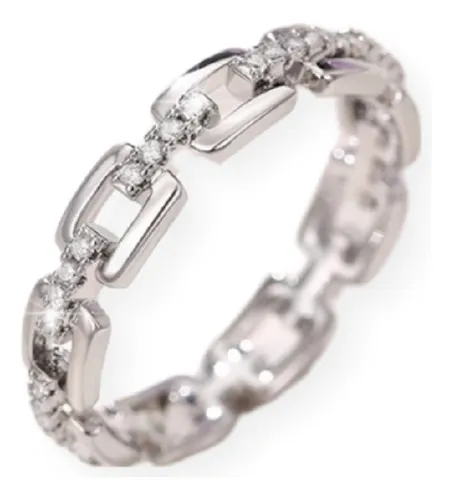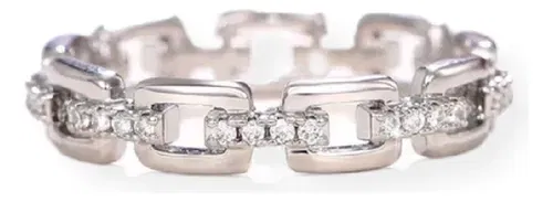 El Anillo Eslabón de la colección Lua Zirconia está confeccionado en plata 925 de alta pureza y realzado con circonias cúbicas (cubic zirconia) que aportan destellos brillantes en cada movimiento. Su diseño entrelazado de eslabones combina modernidad y sofisticación, logrando una pieza versátil que se adapta a cualquier ocasión.