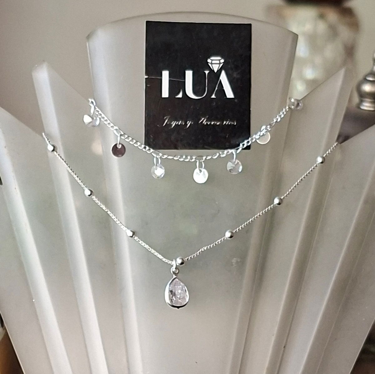 Un diseño lleno de luz: cadena en Plata 925 con multicristales y pequeñas moneditas de cristal Swarovski, que aportan destellos finos y constantes al movimiento. Un collar delicado, moderno y perfecto para quienes aman los detalles brillantes sin exagerar. ✨