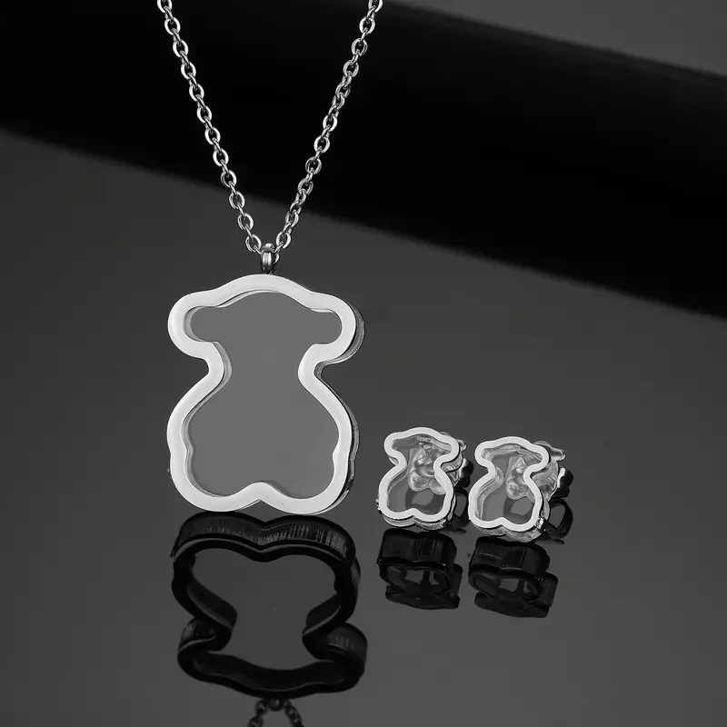 Este Conjunto en plata 925 combina el diseño versatil del OSO y Cristal, crea una pieza sutil, romántica y elegante. Perfecto para regalar o llevar siempre cerca lo que más querés.